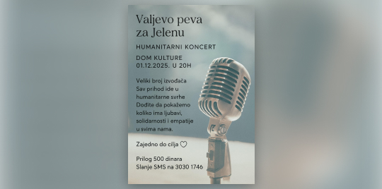 „VALJEVO PEVA ZA JELENU“ HUMANITARNI KONCERT
